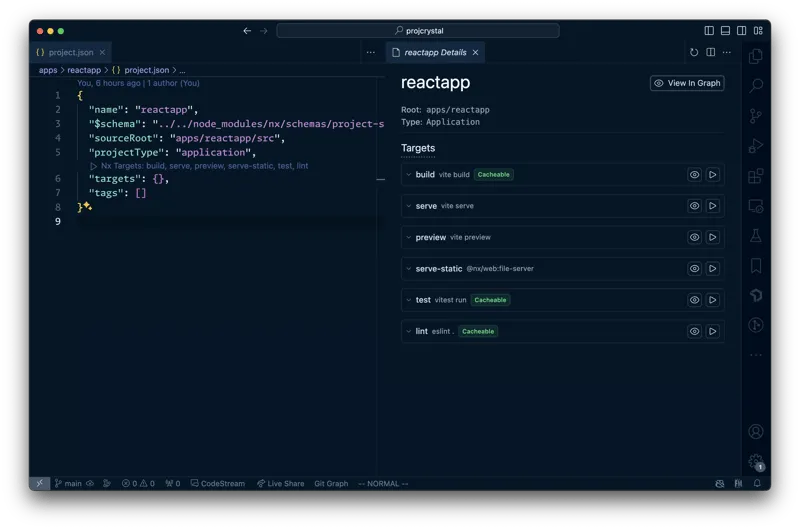... and you choose an "integrated monorepo" you'll get the usual setup powered by Nx Plugins and all the features and benefits that come with them. Where you'll see Project Crystal in action is when you open a project.json